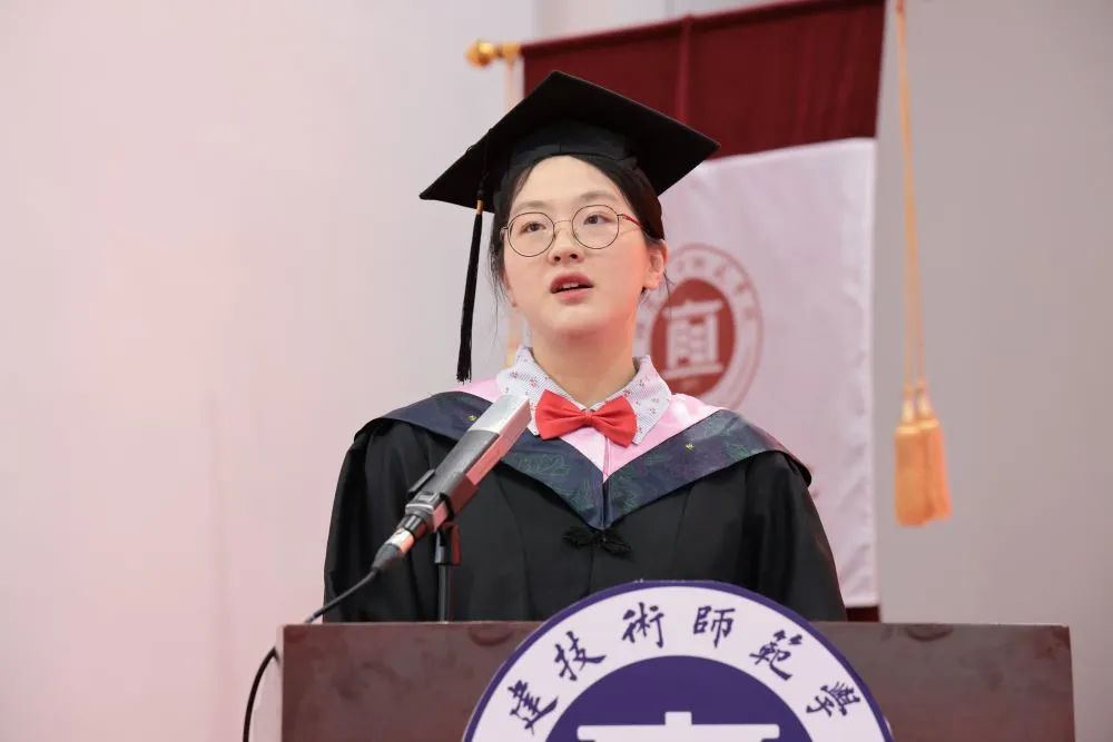 典礼上,各学院院旗首次进场亮相。毕业生代表和老师携手,通过诗歌朗诵、歌曲联唱等节目告白母校与师长,告别大学生活。喜悦与不舍、欢笑与感动、离别与展望在这里汇聚。