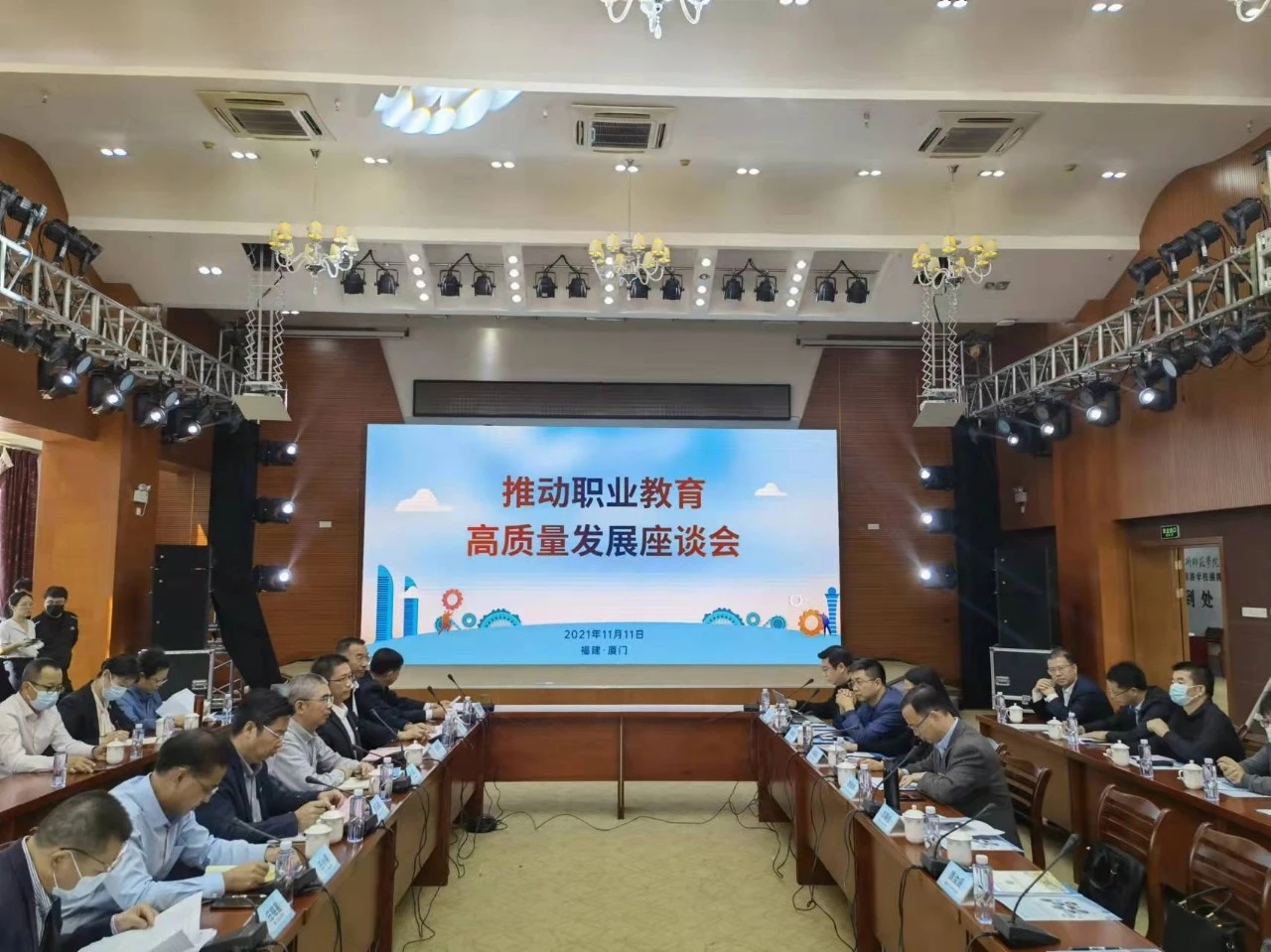 揭牌仪式结束后,与会人员在厦门工商旅游学校召开了座谈会,就深入学习贯彻中办、国办《关于推动职业教育高质量发展的意见》精神,进一步落实部省共建厦门职业教育创新发展高地试点城市政策清单,展开深入的研讨交流。