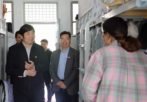 会前,李迅副厅长实地察看了我校大学生创新创业孵化基地,并深入学生宿舍,与学生亲切交流。