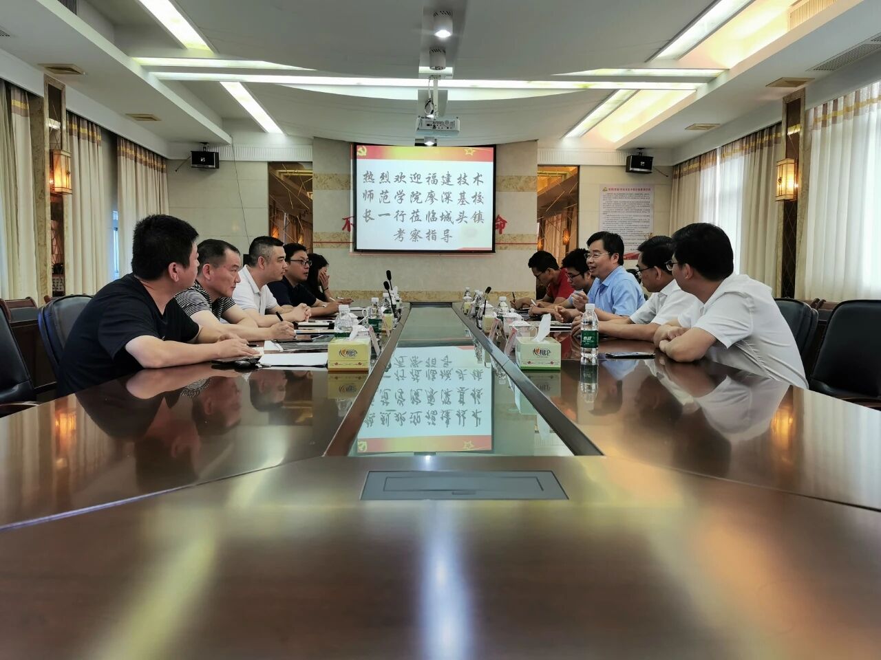 6月24日下午,校长廖深基带领副校长商光美,以及发展规划处、后勤管理处负责人赴福清城头镇协调推进元洪校区项目。廖深基校长一行受到城头镇党委书记陈铄的热情接待。双方举行座谈会,城头镇党委班子有关成员参加活动。