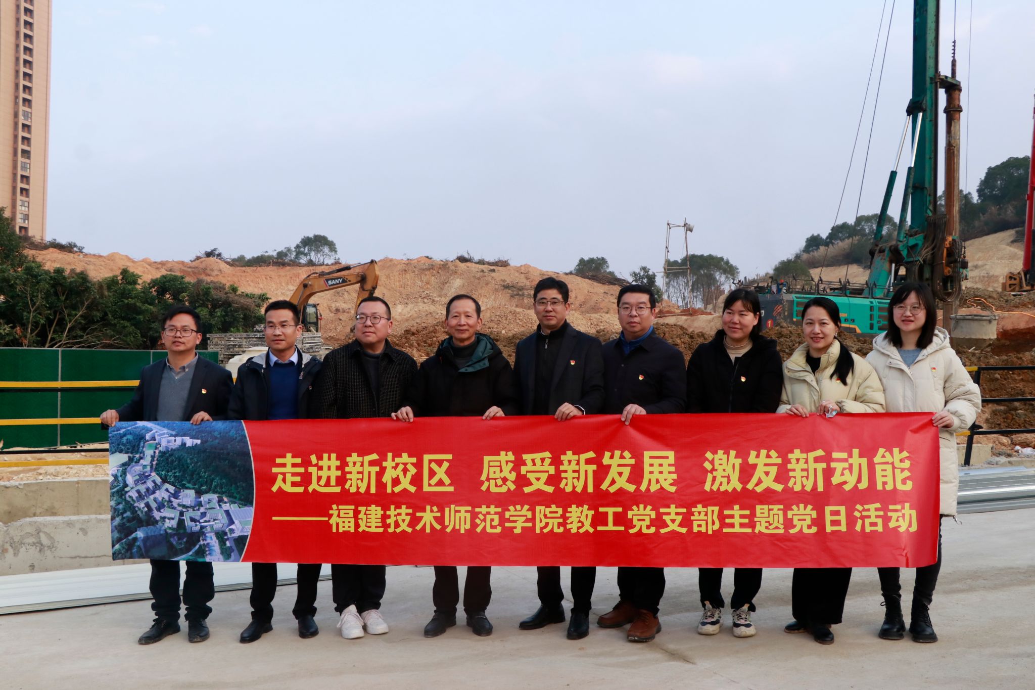 为持续巩固学习贯彻习近平新时代中国特色社会主义思想主题教育成果,让党员同志对我校五马山校区南面片区项目建设有更直观、深入的了解,教育引导党员厚植爱党爱国爱校爱岗的情怀,激励工作热情,提高责任意识和服务意识,充分发挥党员的先锋模范带头作用和党组织的战斗堡垒作用,党政办公室党支部于2月28日下午联合机关其他党支部组织党员前往五马山校区新校区建设腹地,开展“走进新校区、感受新发展、激发新动能”主题党日活动。校党委副书记、校长吴克寿以普通党员身份参加了此次支部活动。